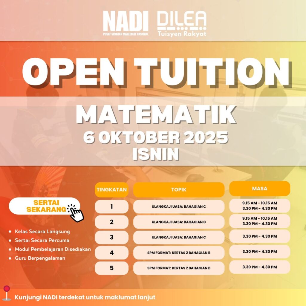 Jom sertai Open Tuition bersama NADI DILEA: Tuisyen Rakyat! ![]()