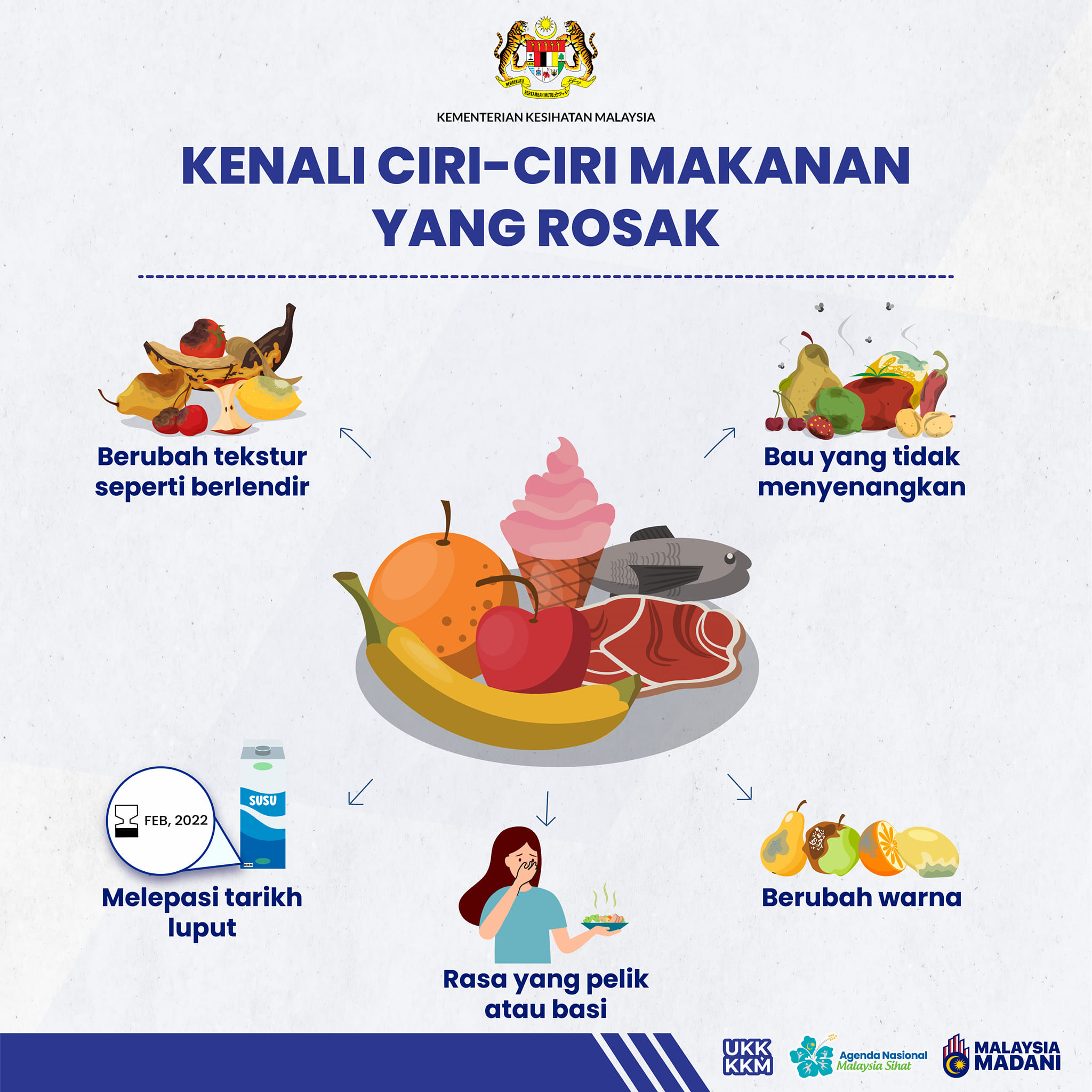 Perhatikan ciri-ciri makanan yang rosak sebagai langkah pencegahan kepada keracunan makanan.